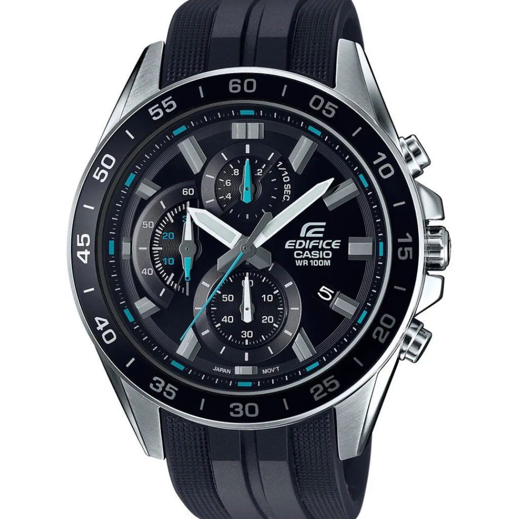 Montre Casio Edifice Acier Blanc Ronde Quartz Chronographe 53mm Fond Noir Bracelet Resine Noire Efv-550p-1avuef