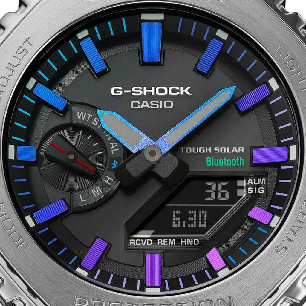 Montre Casio G-shock Classic Acier Argente Ronde Anadigitale 44.4mm Fond Noir Lunette Argente Bracelet Acier Argente Gm-b2100pc-1aer
