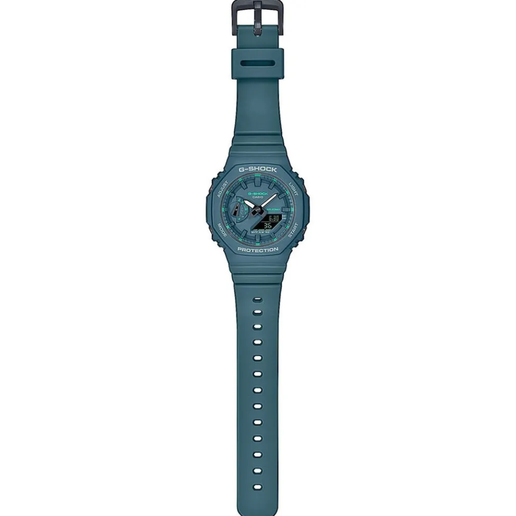 Montre Casio G-shock Classic Carbone Bleu Vert Ronde Quartz 46.2mm Fond Bleu Vert Bracelet Résine Bleu Vert 2atm Gma-s2100ga-3aer
