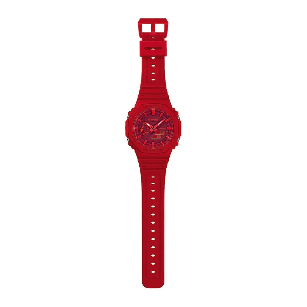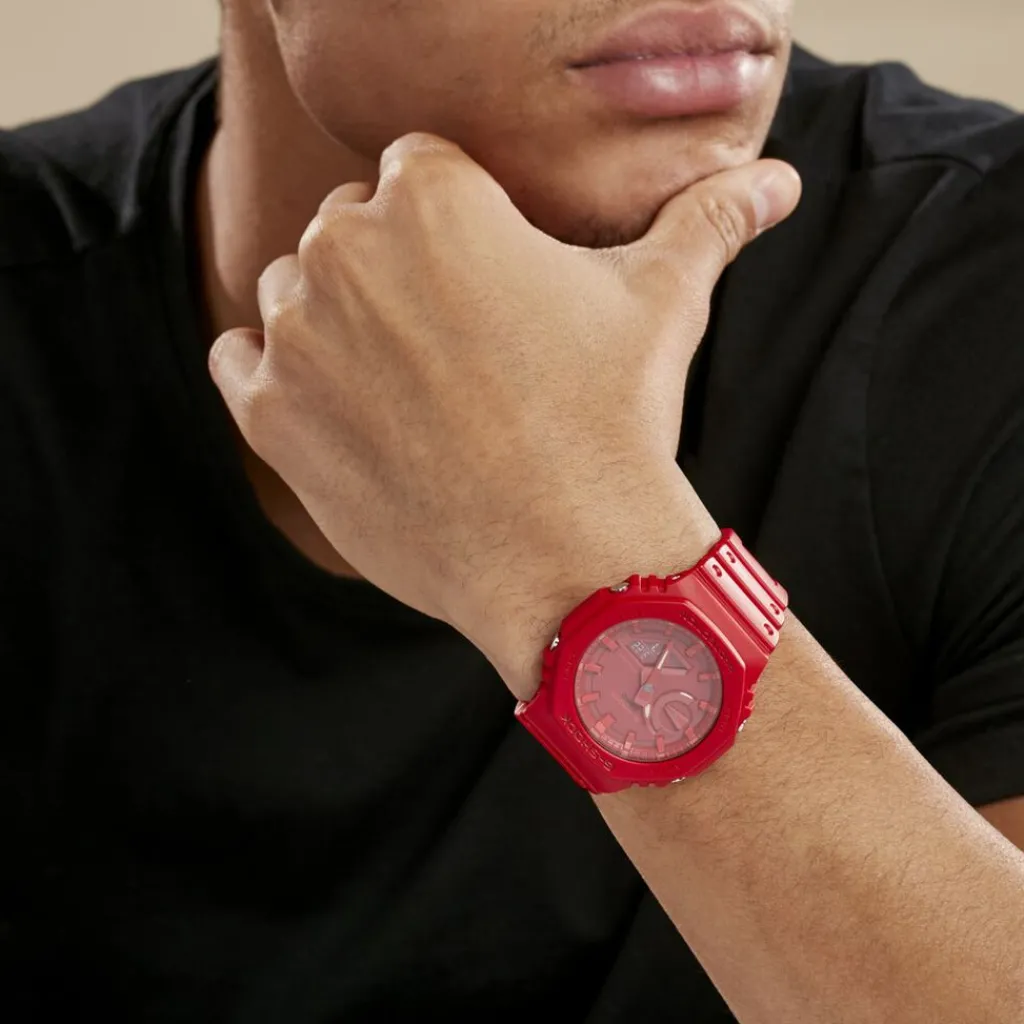 Montre Casio G-shock Resine Rouge Ronde Quartz Anadigital 45.4mm Fond Rouge Bracelet Resine Rouge Ga-2100-4aer