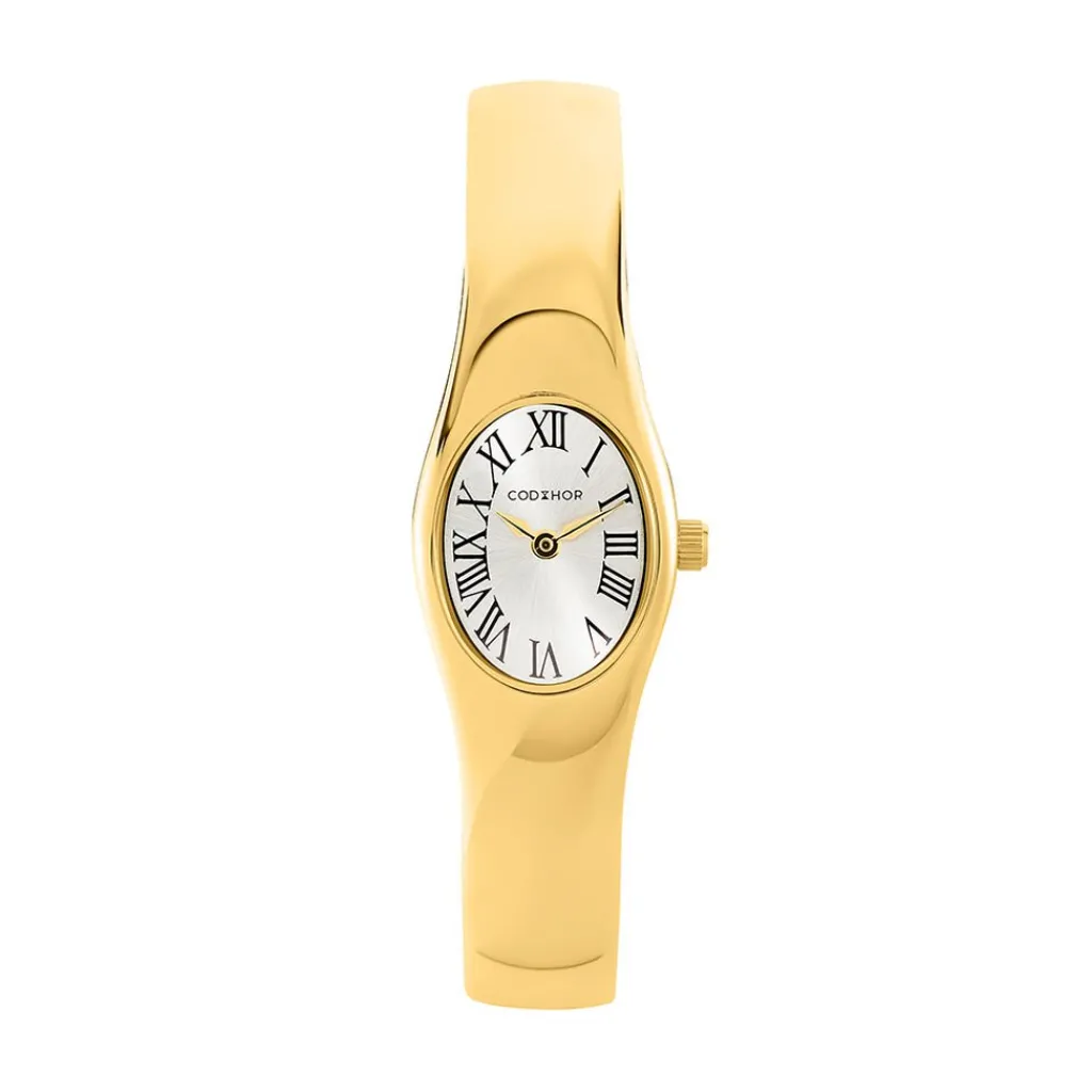 Coffret De Montre Codhor Colette Alliage Doré Quartz Ovale 18mm Fond Argenté Bracelet Jonc Alliage Doré + Bracelet Maille Serpent Dore P101205-a