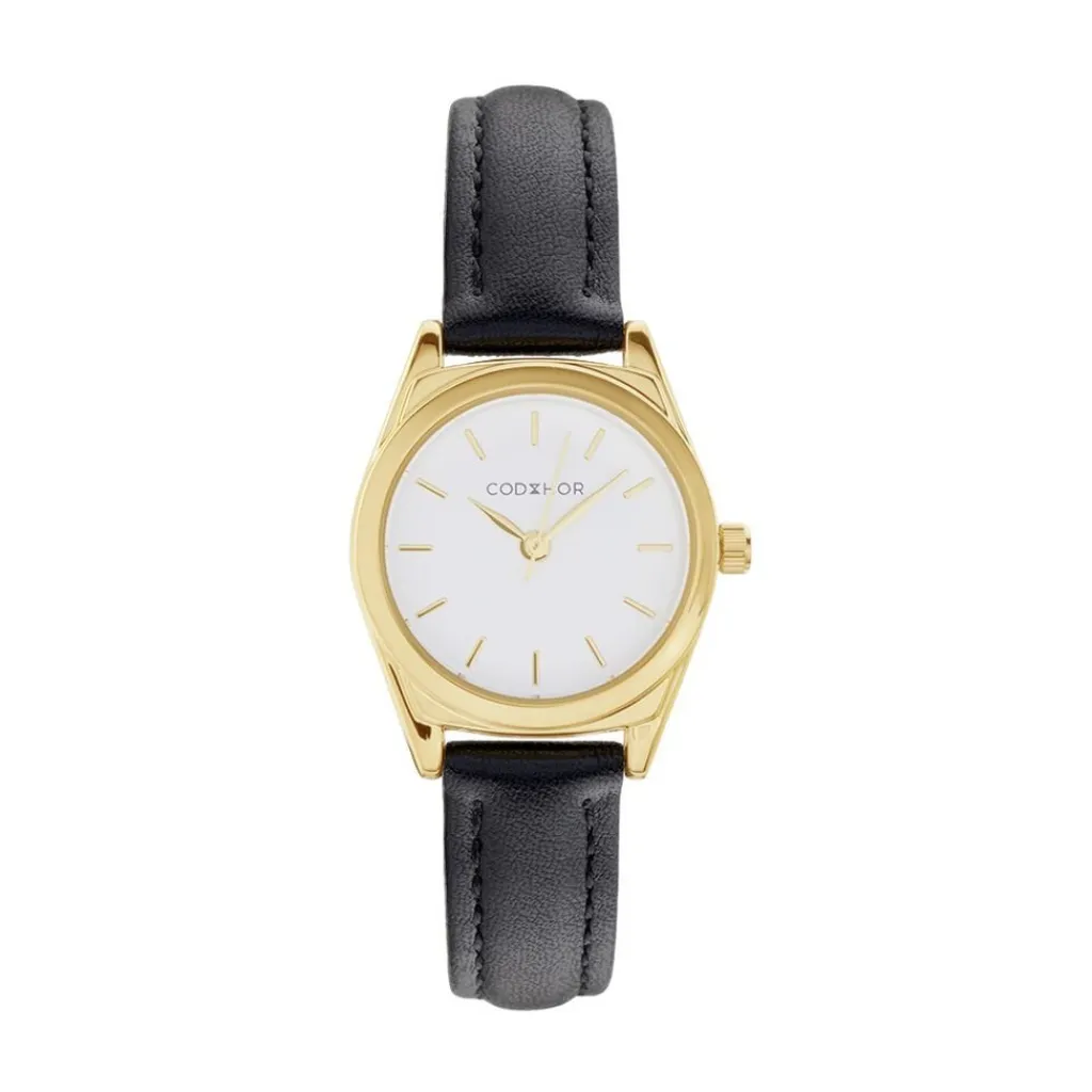 Montre Codhor Anais Alliage Doré Ronde Quartz 25mm Fond Argenté Bracelet Synthétique Noir Wbb0197-002