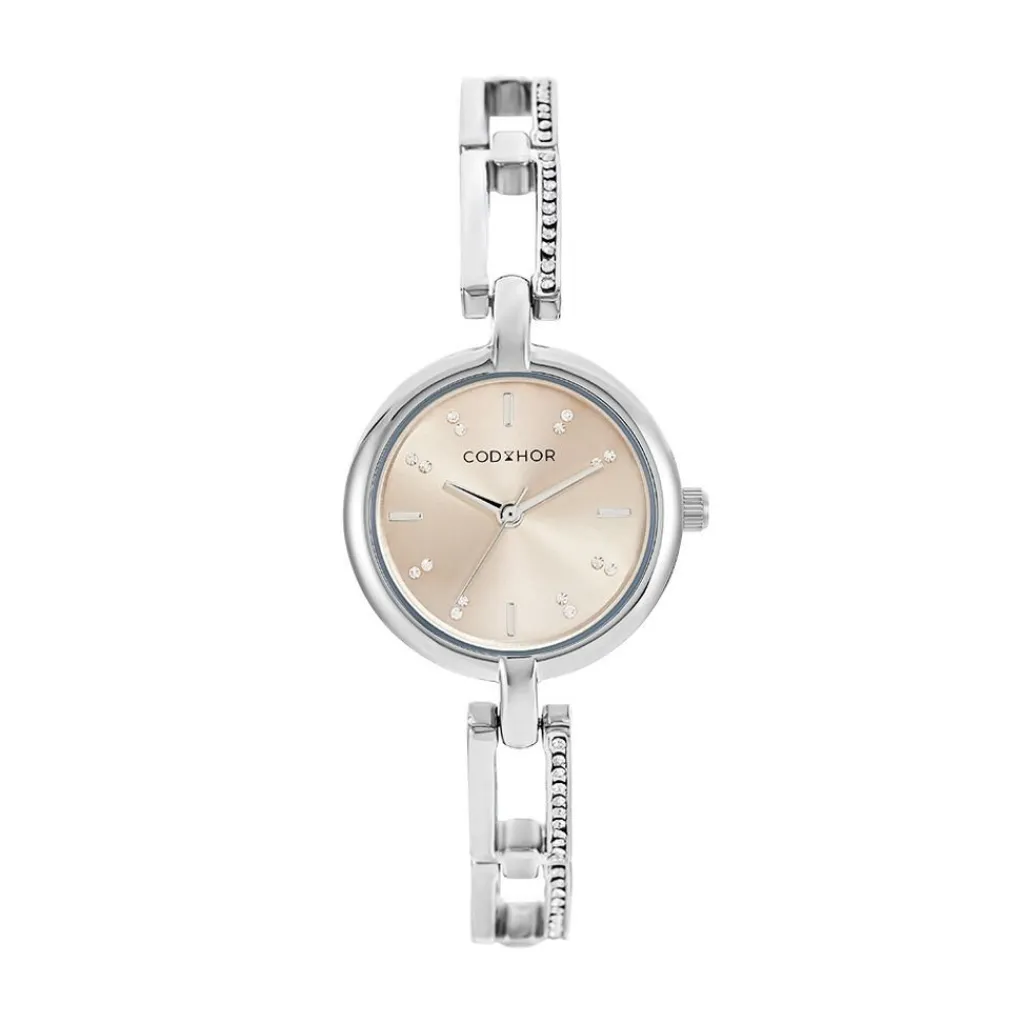 Montre Codhor Andrea Alliage Argenté Ronde Quartz 26mm Fond Rose Bracelet Alliage Argenté Et Strass Wba0110-004