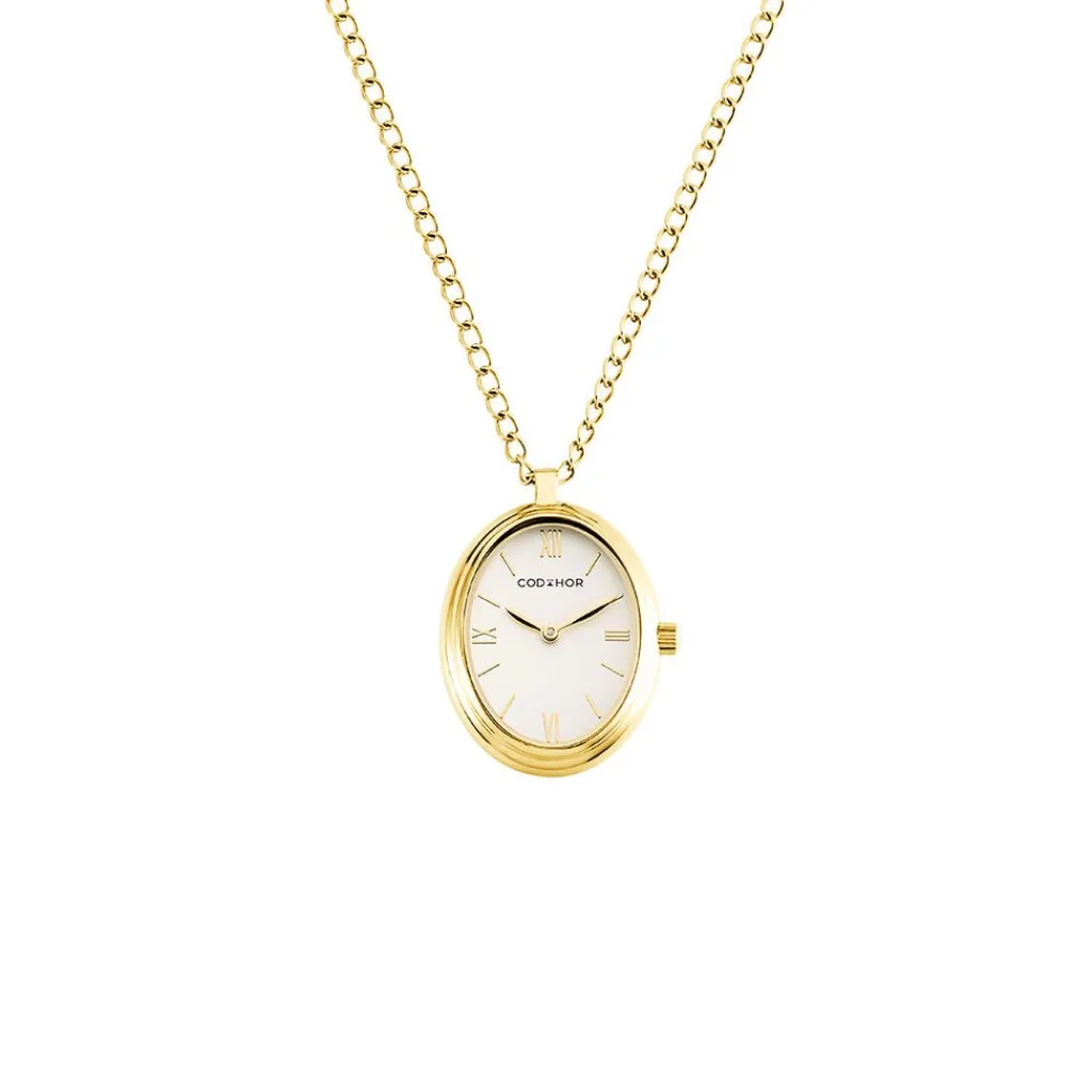 Montre Codhor Collier Astra Alliage Dore Ovale Quartz 23mm Fond Blanc Chaine Acier Dore Ch.5256s/01m