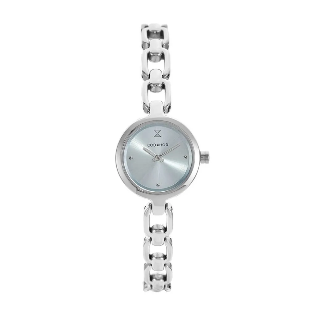 Montre Codhor Lina Alliage Argente Ronde Quartz 22.5mm Fond Bleu Gris Bracelet Alliage Argente Ch.5000sa/02m