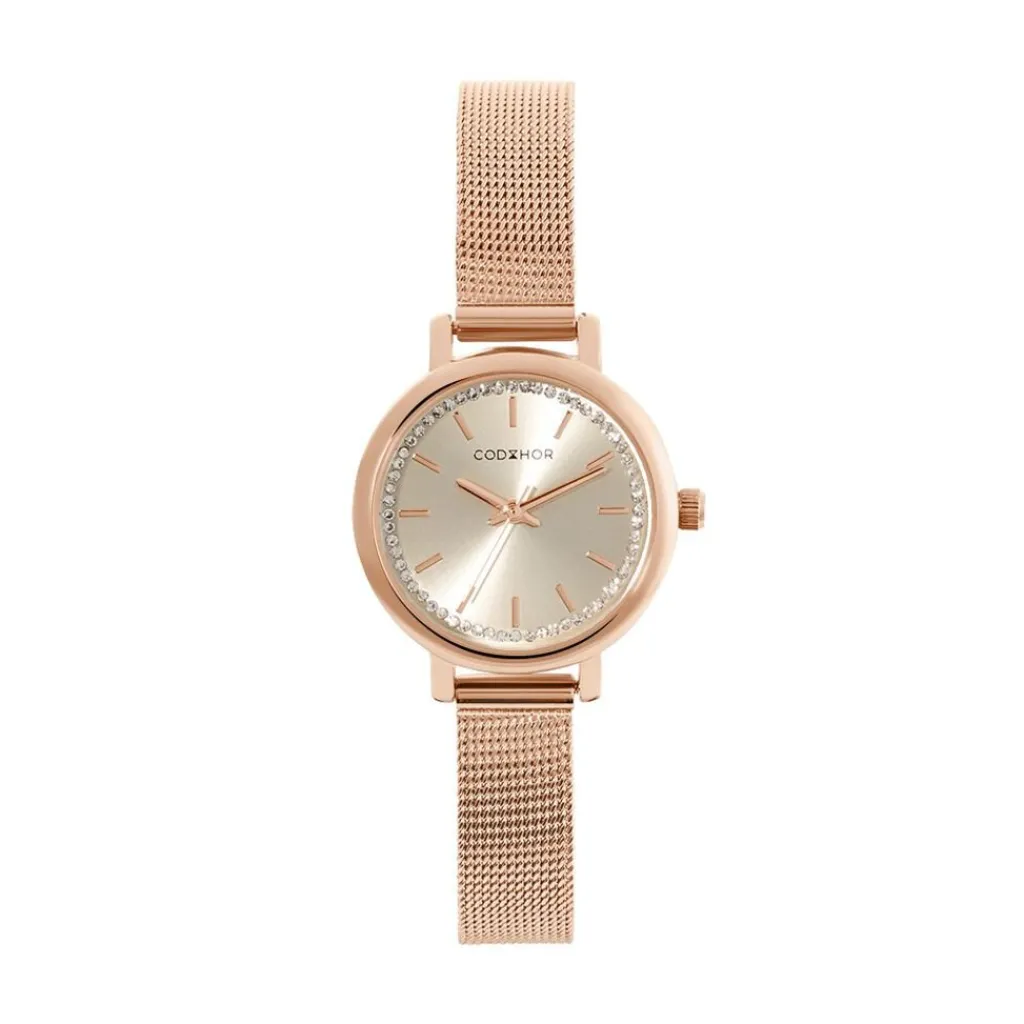 Montre Codhor Nerine Alliage Doré Rose Ronde Quartz 27mm Fond Rose Bracelet Milanais Acier Doré Rose Wbj0085-011
