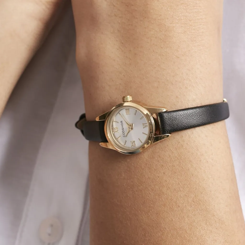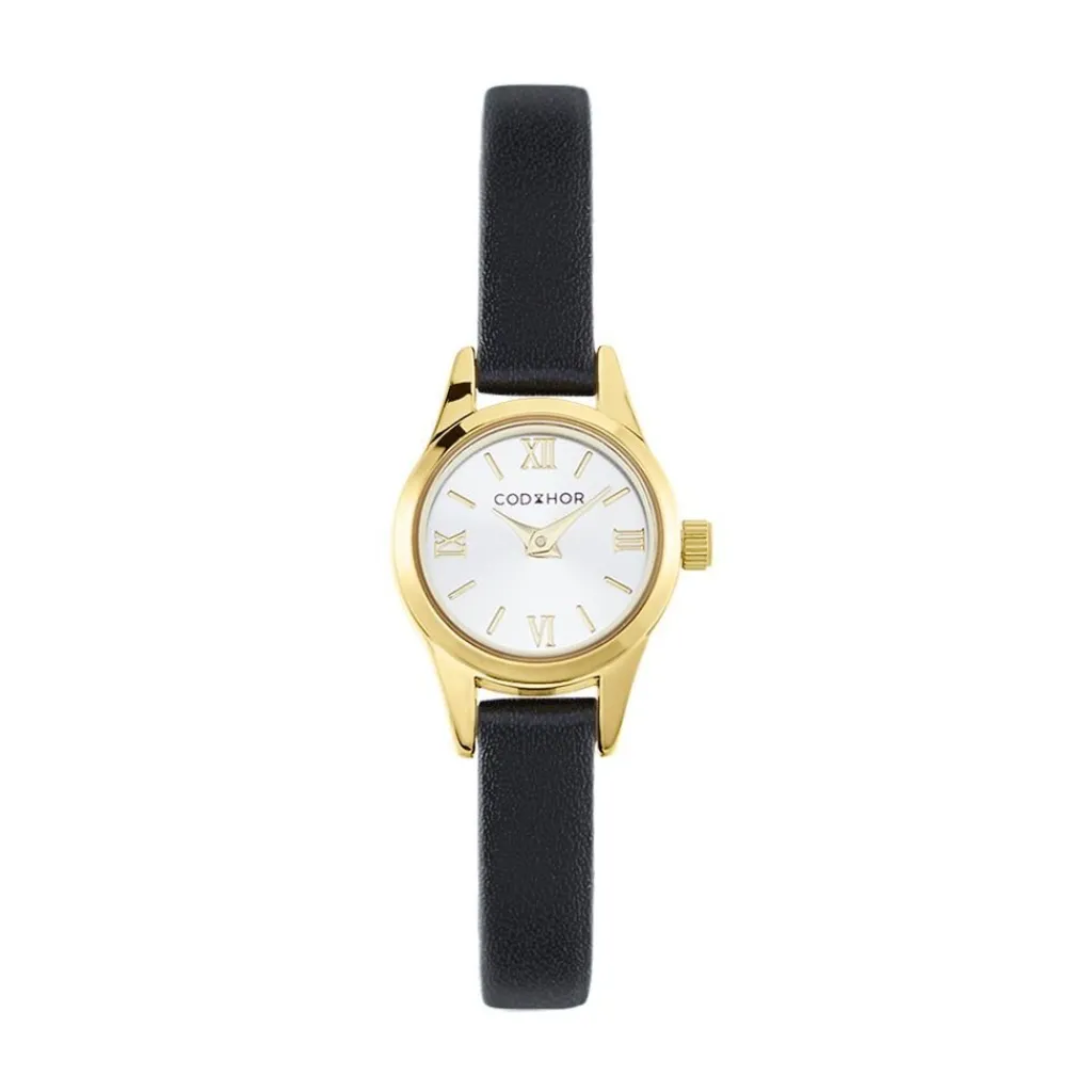 Montre Codhor Simone Alliage Doré Ronde Quartz 19.4mm Fond Argenté Bracelet Synthétique Noir P101040-b
