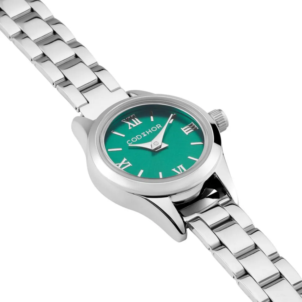 Montre Codhor Simone Alliage Argenté Ronde Quartz 19.4mm Fond Vert Bracelet Acier Argenté P101040-g