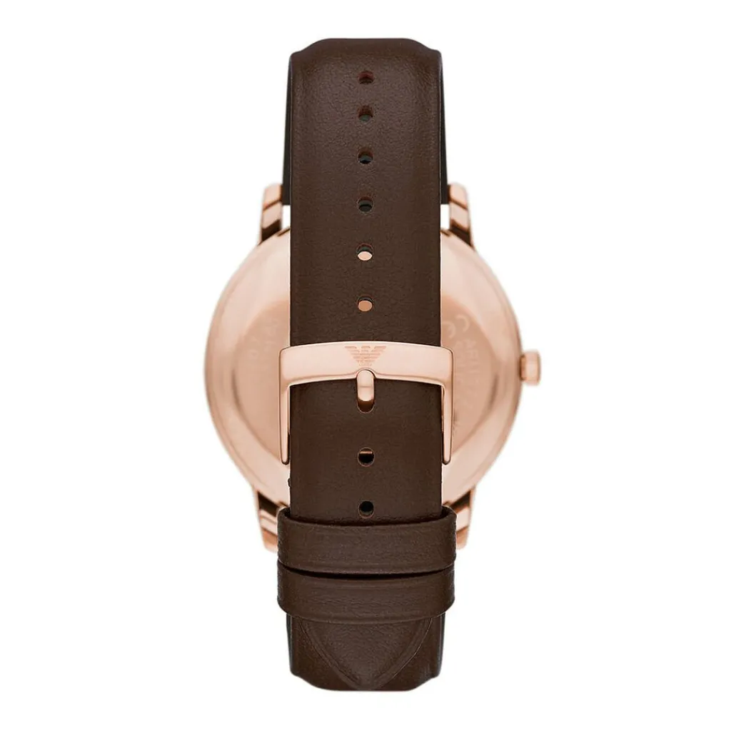 Montre Emporio Armani Acier Rose Rond 42mm Quartz Fond Blanc Bracelet Cuir Marron Ar11572