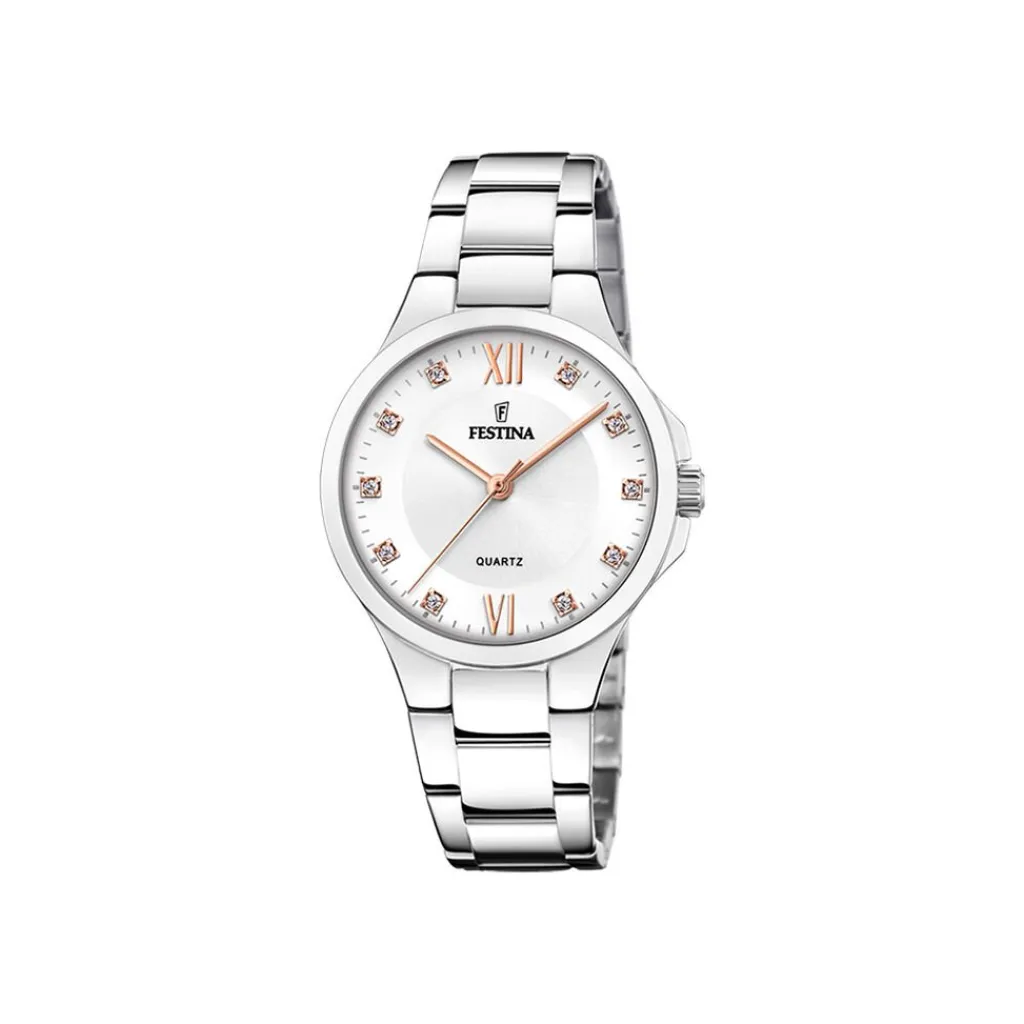 Montre Festina Mademoiselle Acier Argente Ronde Quartz 34mm Fond Argente Bracelet Acier Argente F20582/1