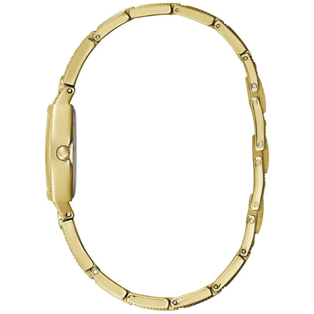 Montre Guess Bella Acier Dore Tonneau Quartz 22mm Fond Blanc Bracelet Acier Dore Gw0249l2