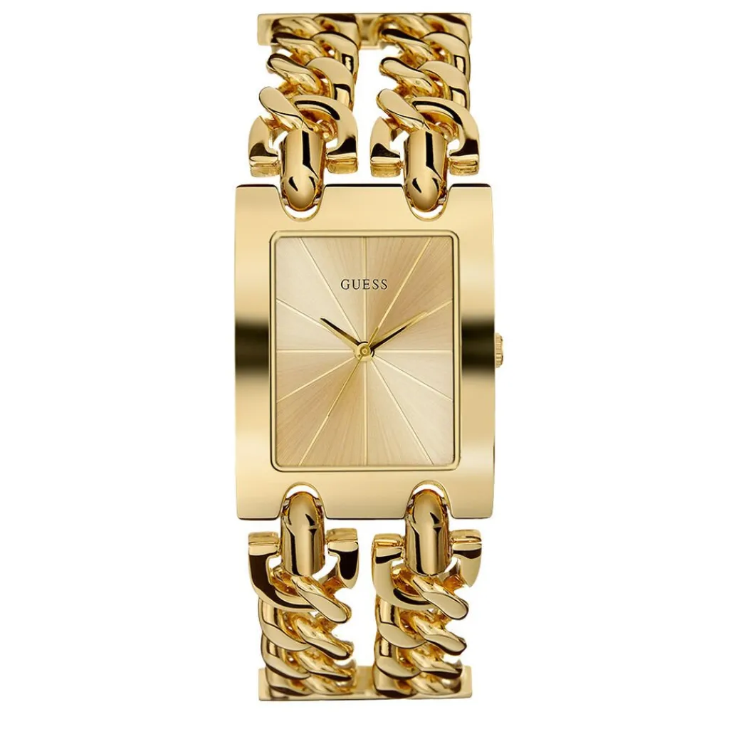 Montre Guess Heavy Acier Dore Rectangulaire Quartz 40mm Fond Champagne Bracelet Acier Dore W1117l2