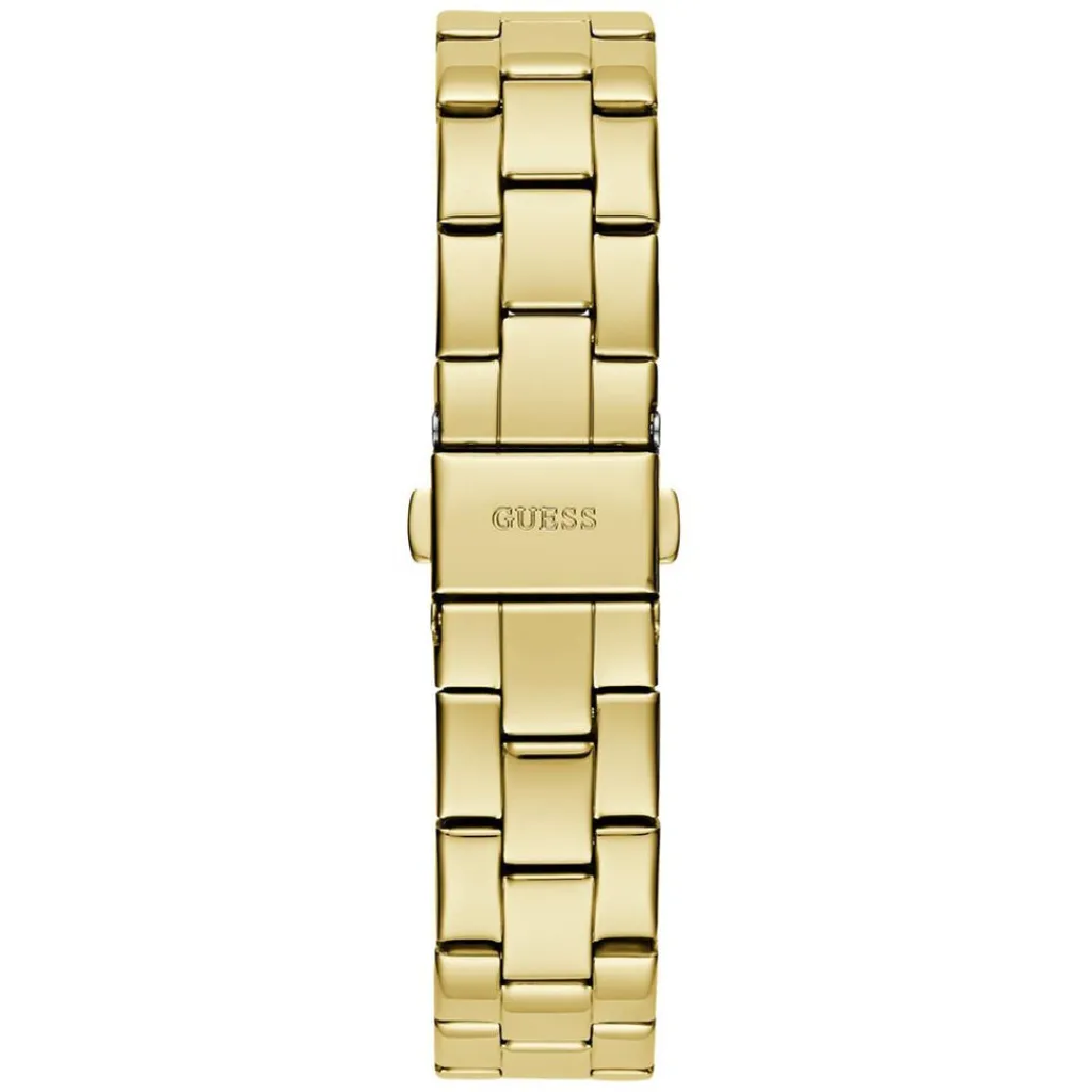 Montre Guess Tri Plaque Acier Doré Ronde Quartz 34mm Fond Champagne Motif Triangle Noir Logo Bracelet Acier Doré Gw0675l2