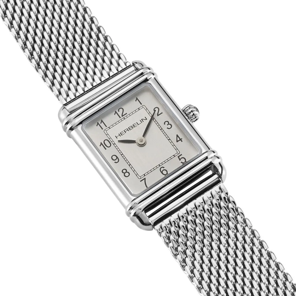 Montre Herbelin Art Deco Acier Blanc Rectangulaire Quartz 20.3×24.4mm Fond Argent Bracelet Acier Blanc 17478/22bm