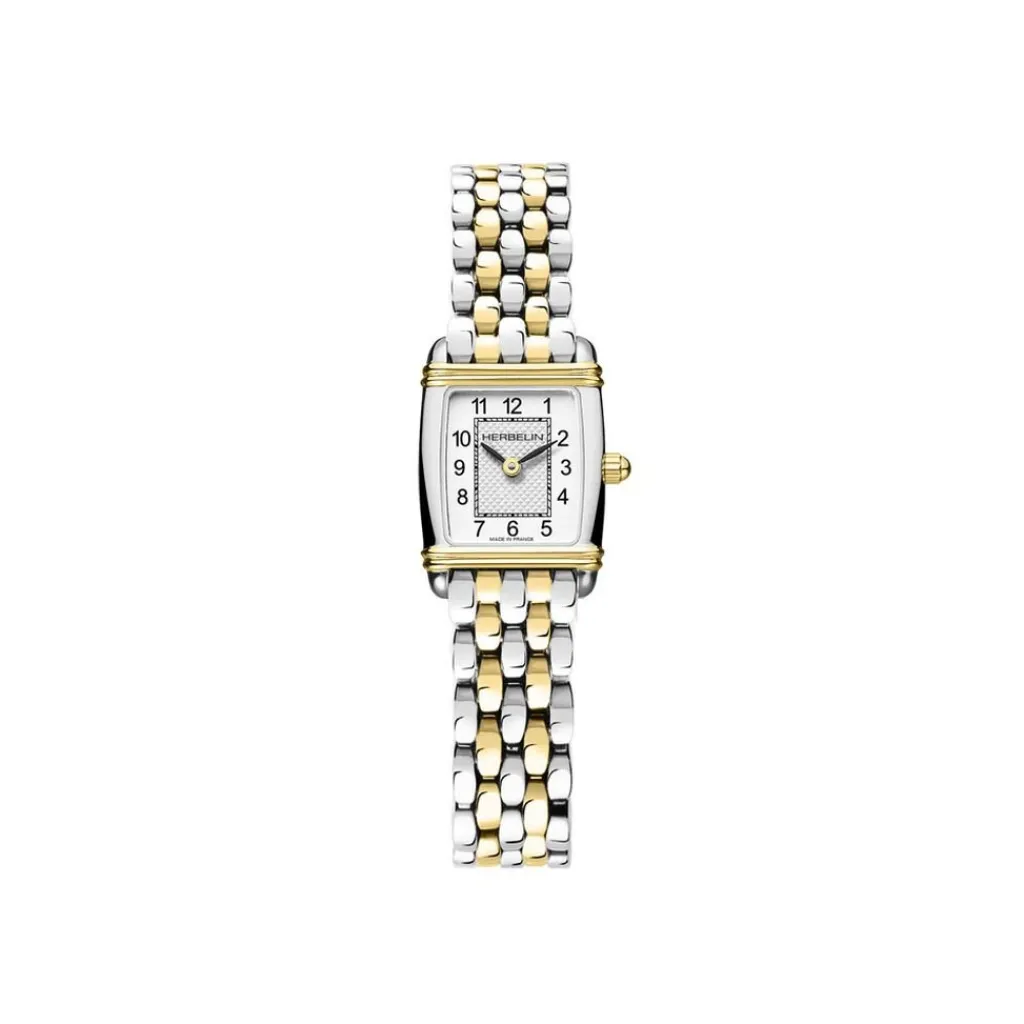 Montre Herbelin Art Deco Acier Inoxydable Bicolore Doré/Blanc Quartz Rectangulaire 17,8X19,4Mm Fond Argenté Bracelet Acier Inoxydable Bicolore Doré/Blanc 17438Bt22