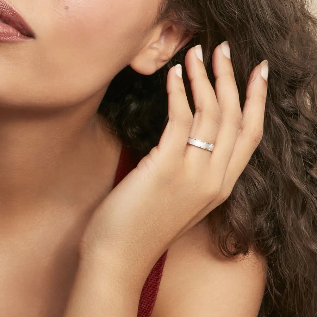 Alliance Argent Blanc 925/1000 Mat + Lisières Brillants 4 Mm