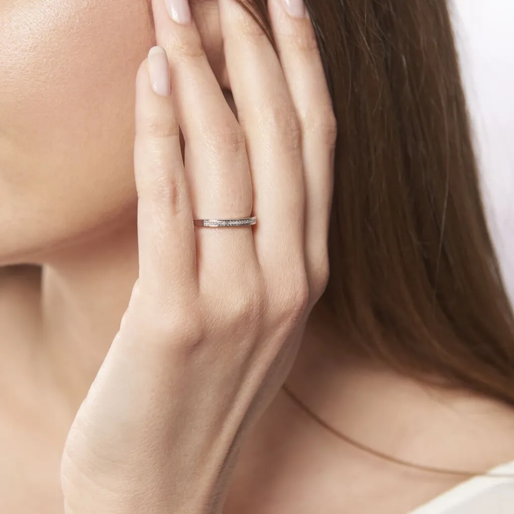 Alliance Or Blanc 375/1000 Diamants Liseret Demi Tour