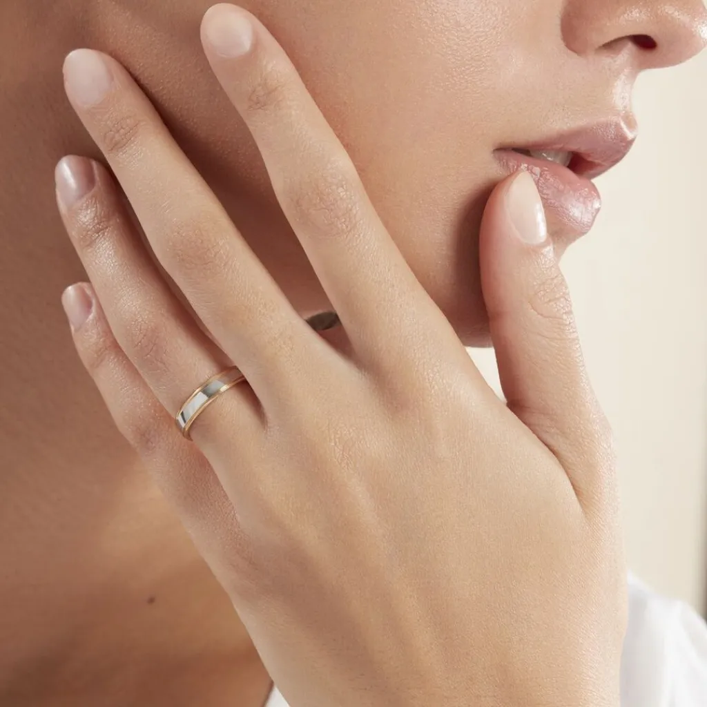 Alliance Or Bicolore 750/1000 Blanc Et Jaune Romaine Polie 4mm