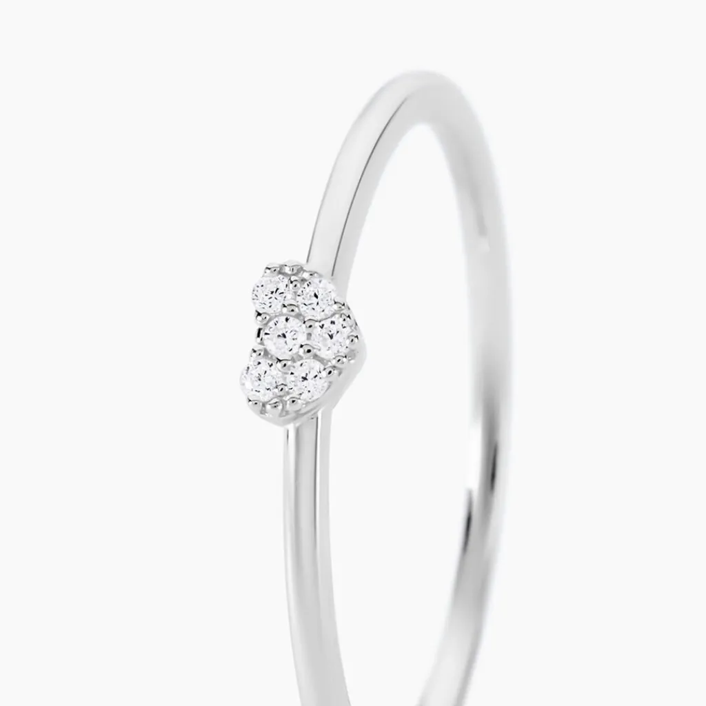 Bague Argent Blanc 925/1000 C艙ur Pavage Oxydes De Zirconium