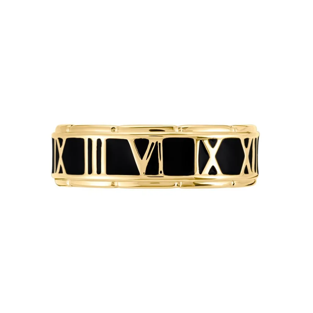 Bague Plaqué Or Jaune Chiffres Romains émail Noir