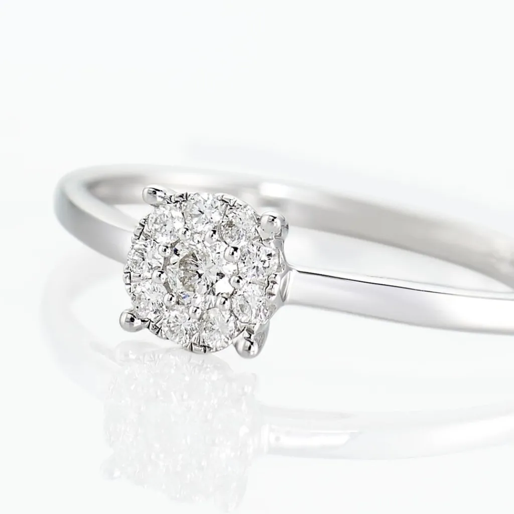 Bague Or Blanc 375/1000 Multipierres Diamants 0.15cts