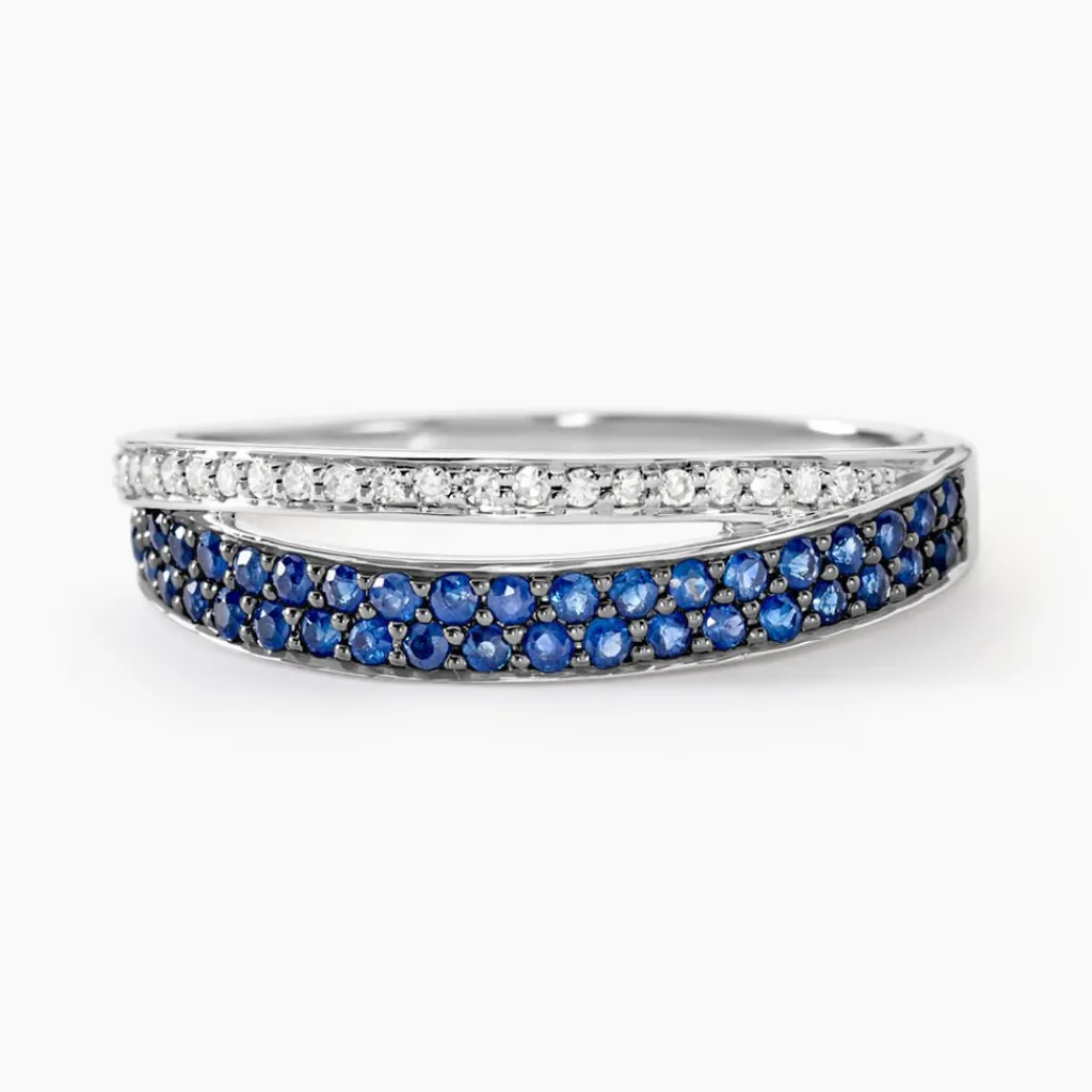 Bague Or Blanc 375/1000 Saphirs Et Diamants