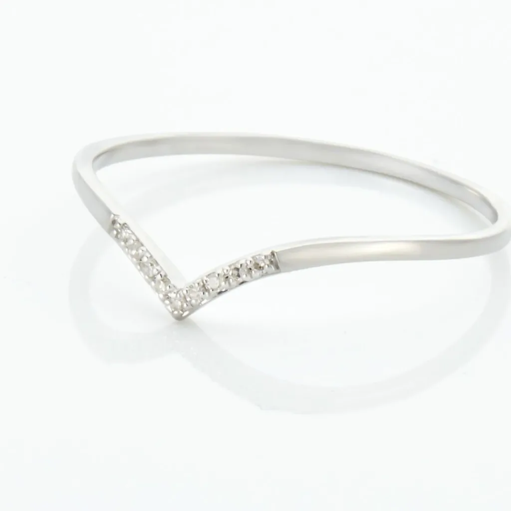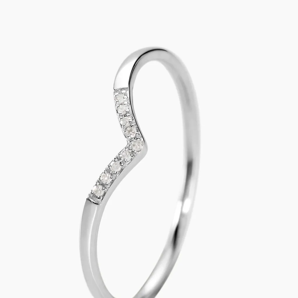 Bague Or Blanc 375/1000 Forme Aile De Mouette Pavage Diamants
