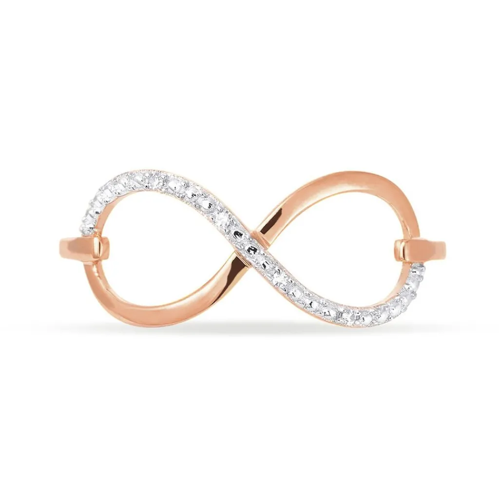 Bague Or Rose 375/1000 Forme Infini Demi Pavage Diamants