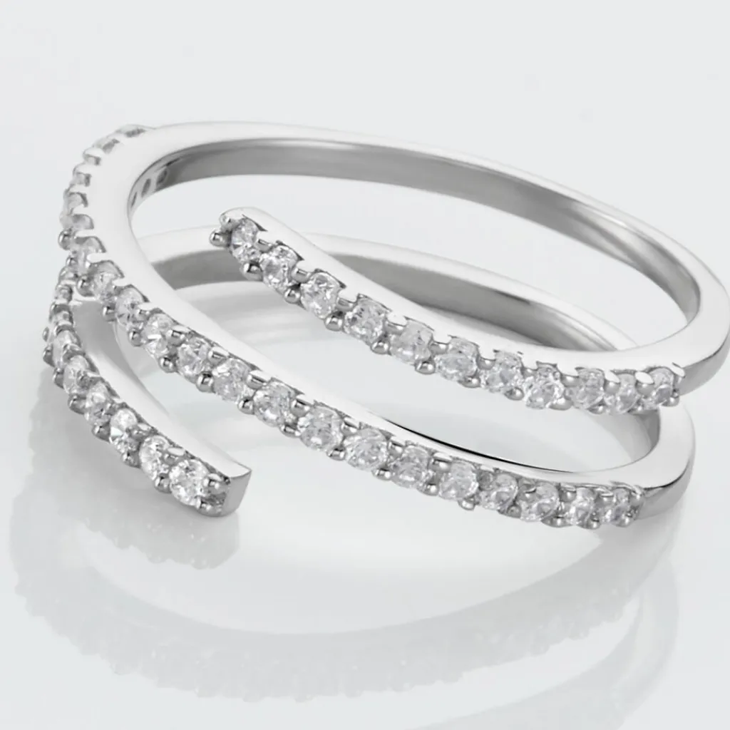 Bague Argent Blanc 925/1000 Multitours Pavage Oxydes De Zirconium