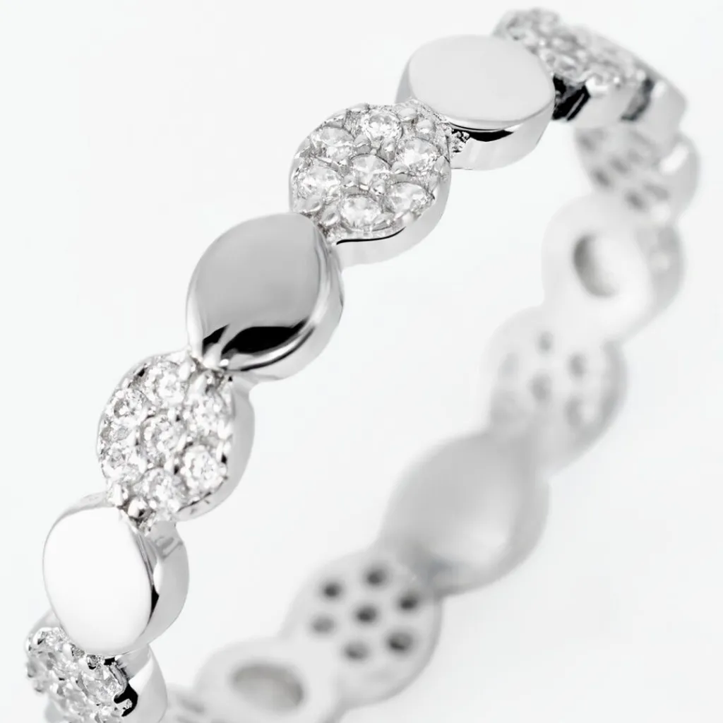 Bague Argent Blanc 925/1000 Multicercles Pavage Oxydes De Zirconium