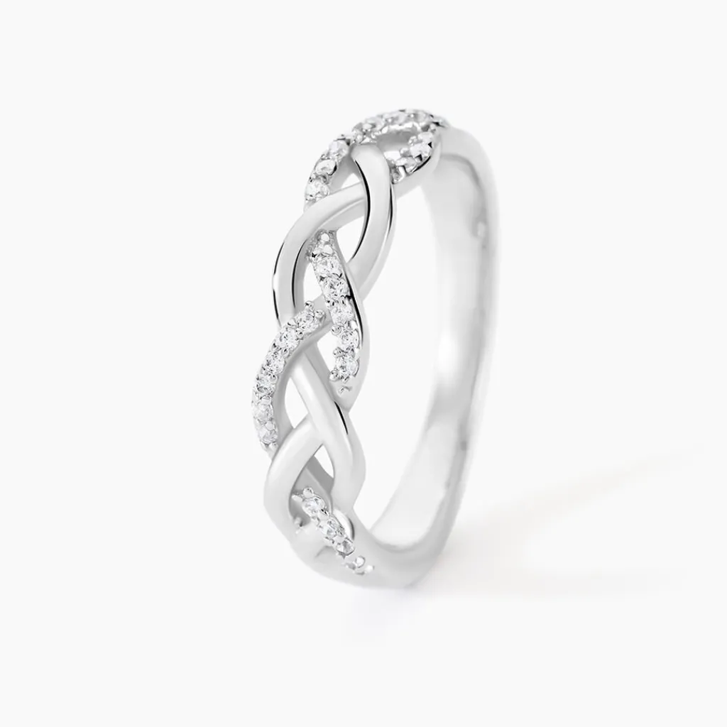 Bague Argent Blanc 925/1000 Effet Vrille Oxydes De Zirconium Blanc Serti Griffes