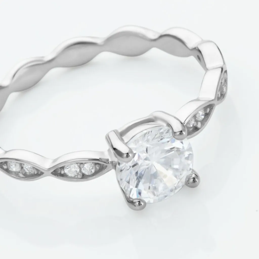 Bague Argent Blanc 925/1000 Solitaire Oxyde De Zirconium Serti 4 Griffes 6mm