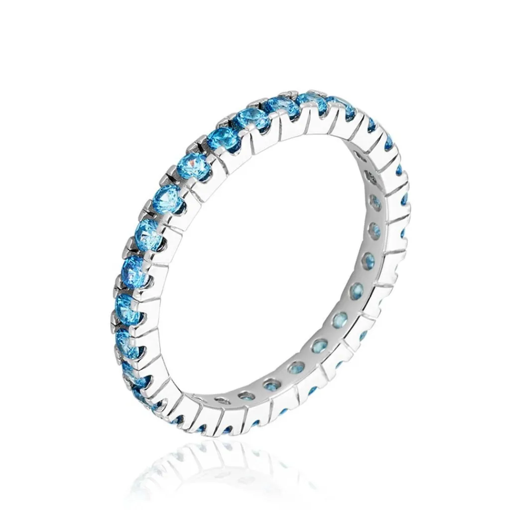 Bague Argent 925/1000 Tour Complet Oxydes De Zirconium Bleu Azur