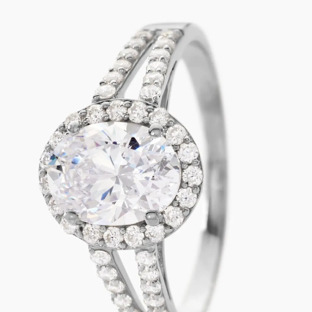 Bague Or Blanc 375/1000 Entourage Double Rangs Oxydes De Zirconium