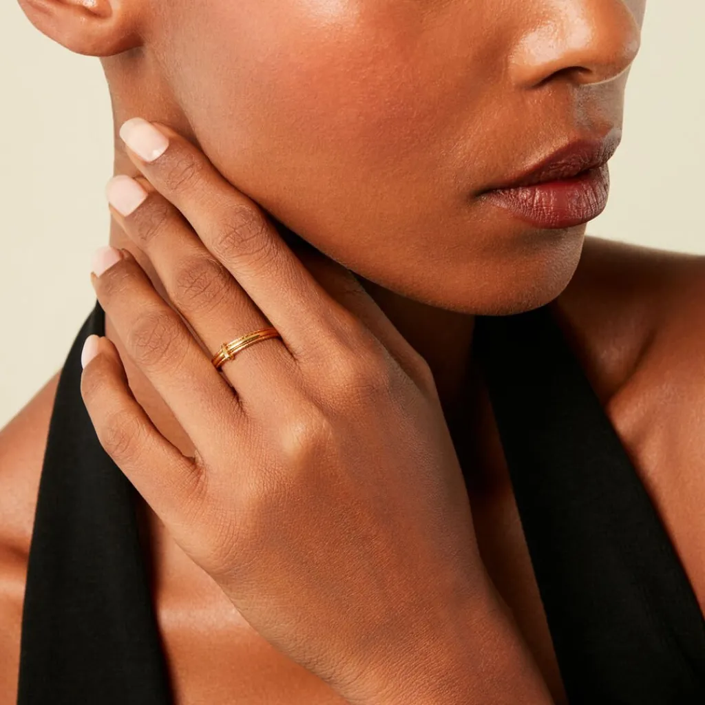 Bague Plaqué Or Jaune Triple Anneau Effet Lisse