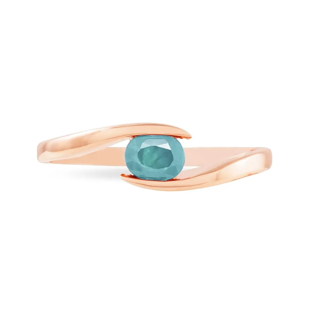 Bague Or Rose 375/1000 Aigue-marine Ovale Serti Couteau