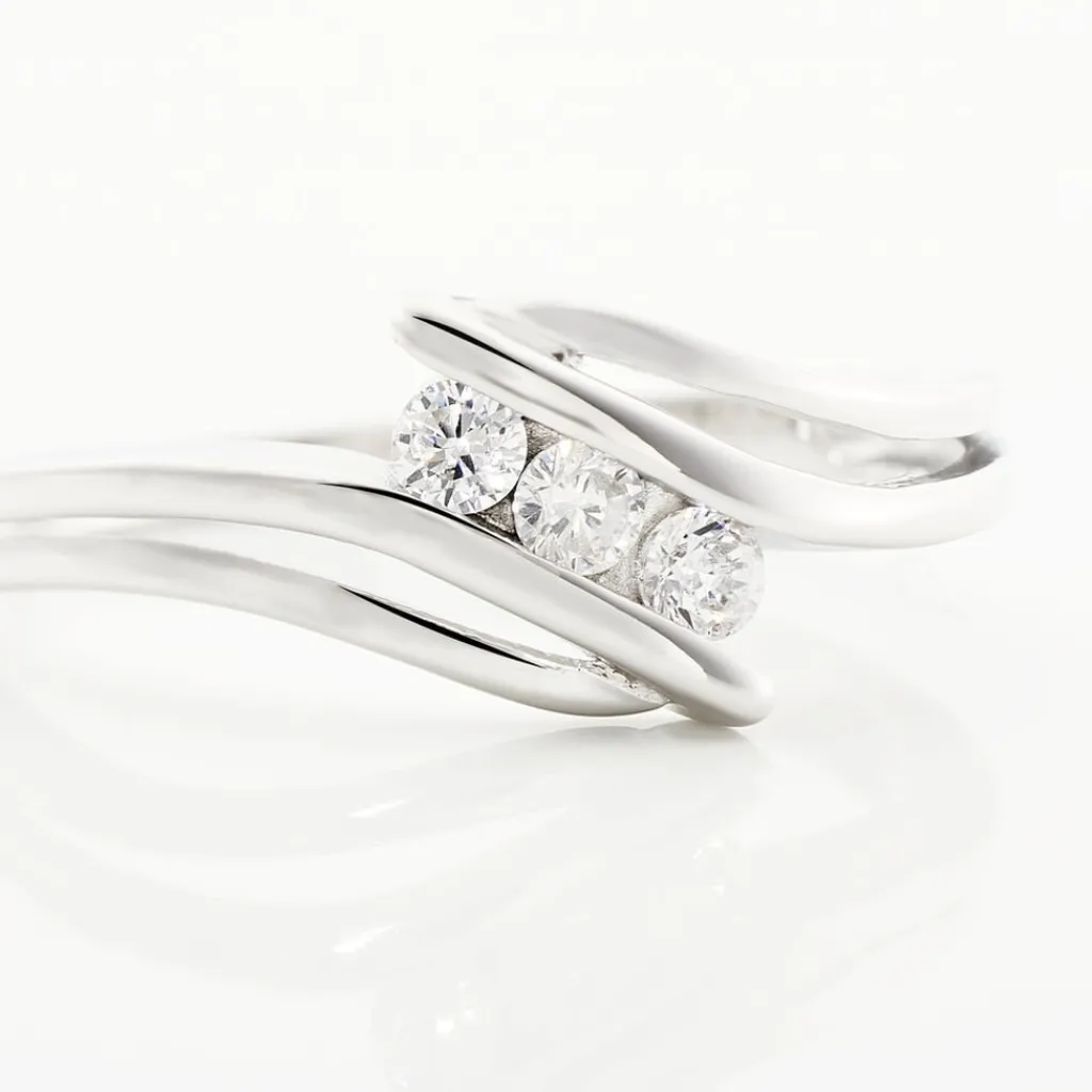 Bague Argent Blanc 925/1000 Trilogie Oxydes De Zirconium Seti Couteau