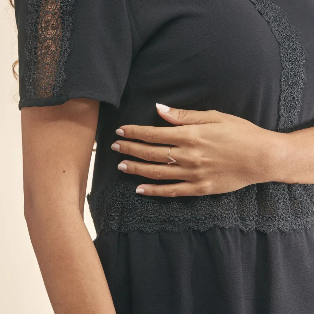 Bague Or Jaune 375/1000 Forme V Et Oxydes De Zirconium