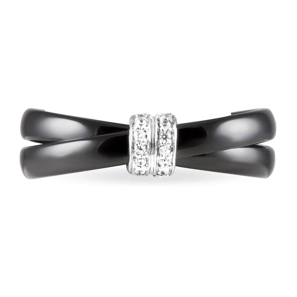 Bague Argent 925/1000 Céramique Lisse Anneaux Entrelacés Oxyde