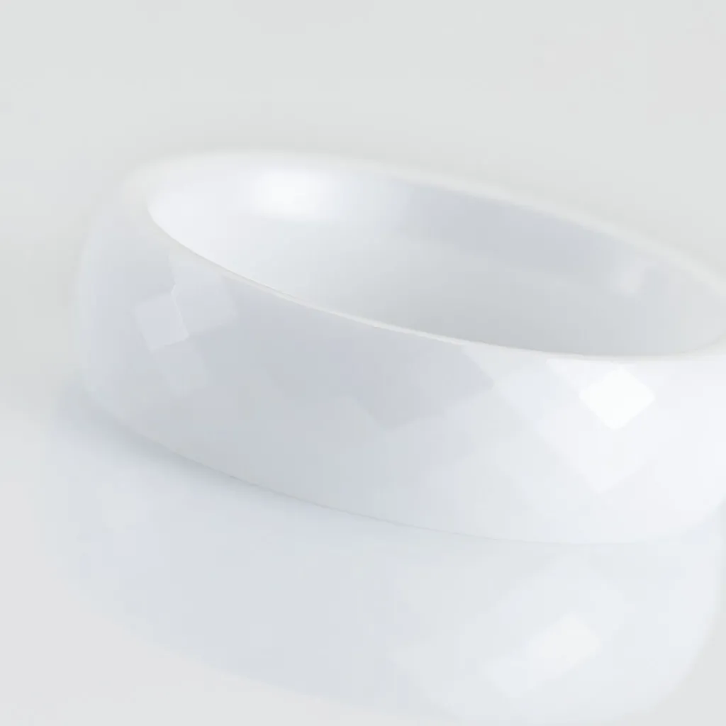 Bague Anneau Facettee Ceramique Blanche 6mm