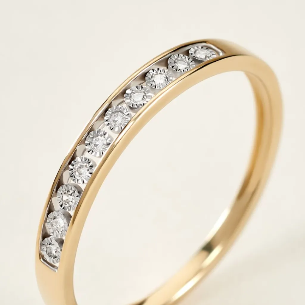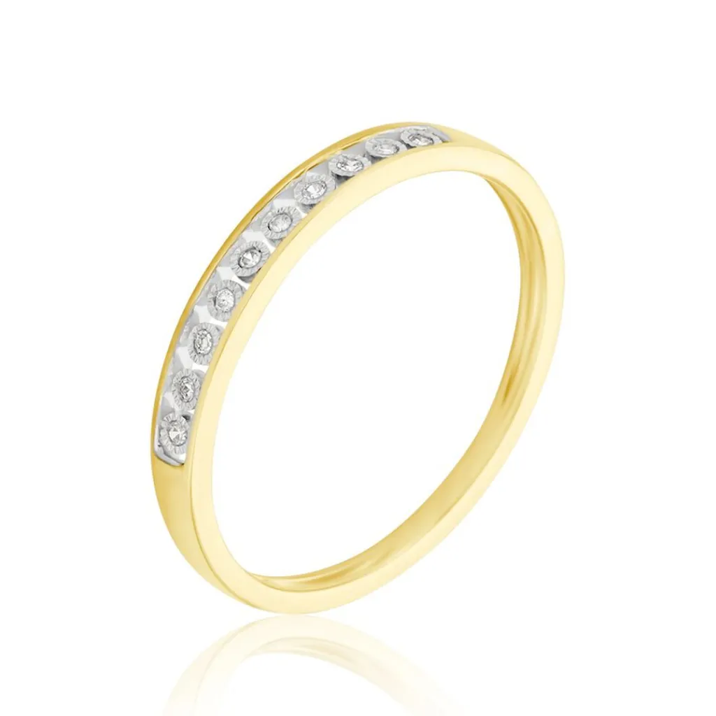 Alliance Or Jaune 375/1000 Diamants Pastille 0.04cts Serti Rail