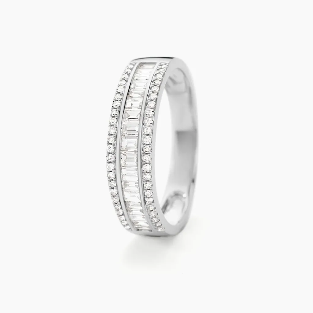 Bague Or Blanc 750/1000 Pm Diamants Baguettes 0.40cts Et Ronds