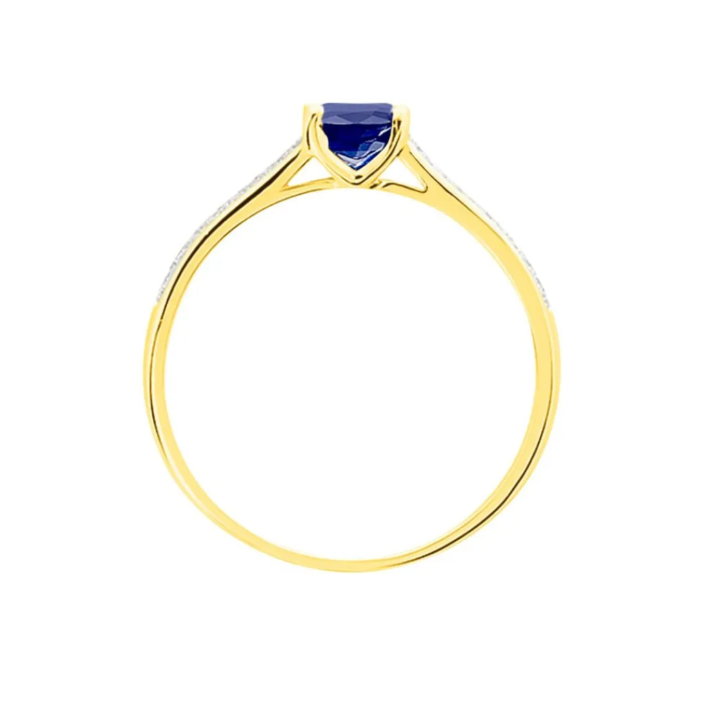 Bague Or Jaune 375/1000 Saphir Oval Accompagne Diamants