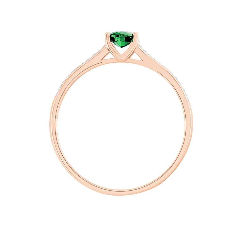 Bague Or Rose 375/1000 Emeraude Ovale Accompagnee Diamants Pm