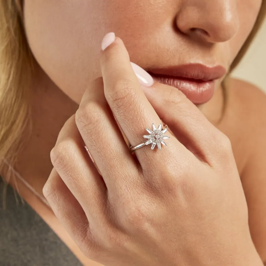 Bague Argent Blanc 925/1000 Fleur Pavage Oxydes De Zirconium