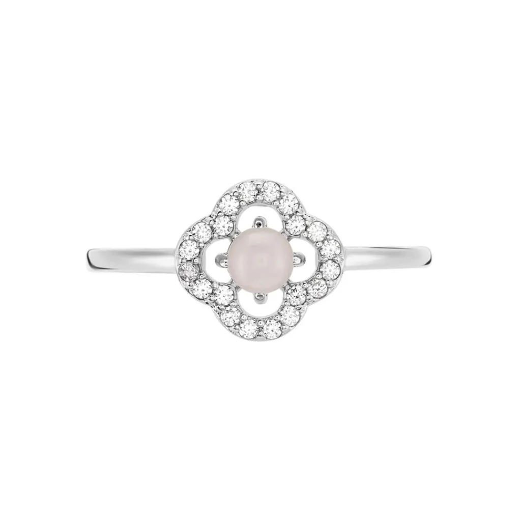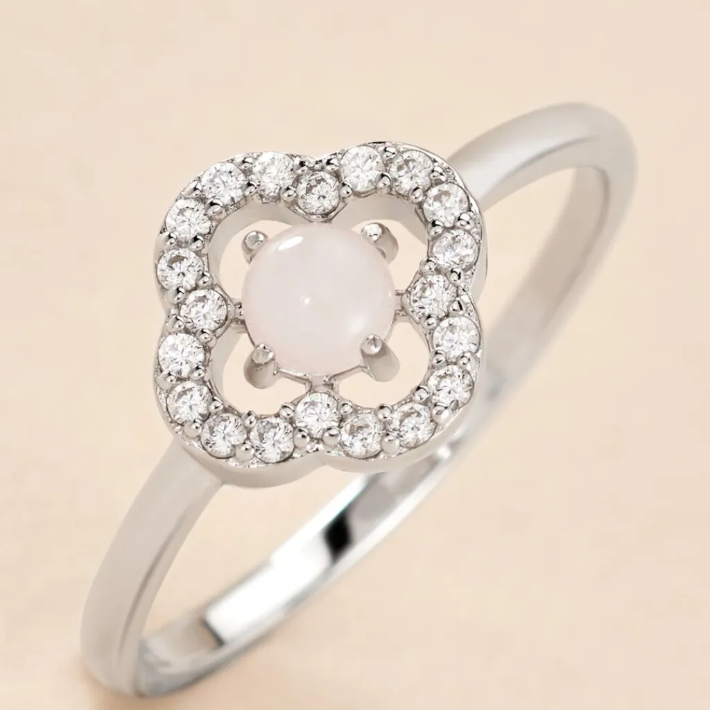 Bague Argent 925/1000 dally Fleur Quartz Rose Entourage Oxydes De Zirconium