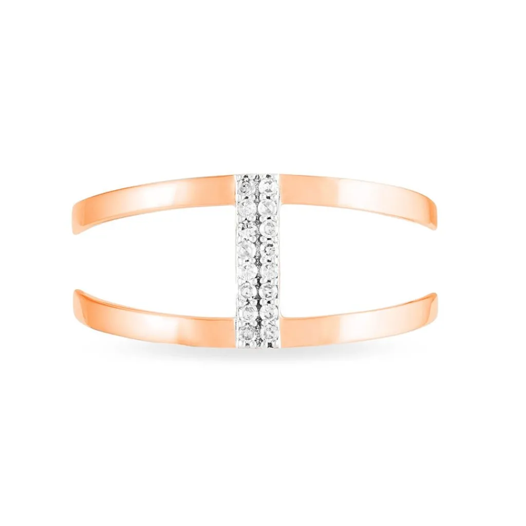 Bague Or Rose 375/1000 Ajouree Barre De Milieu Pavee Diamants