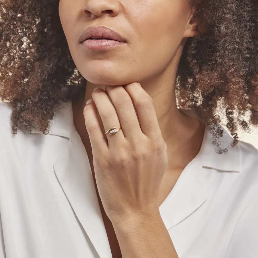 Bague Or Jaune 375/1000 Delphine Forme Trilogie Diamants 0.027cts