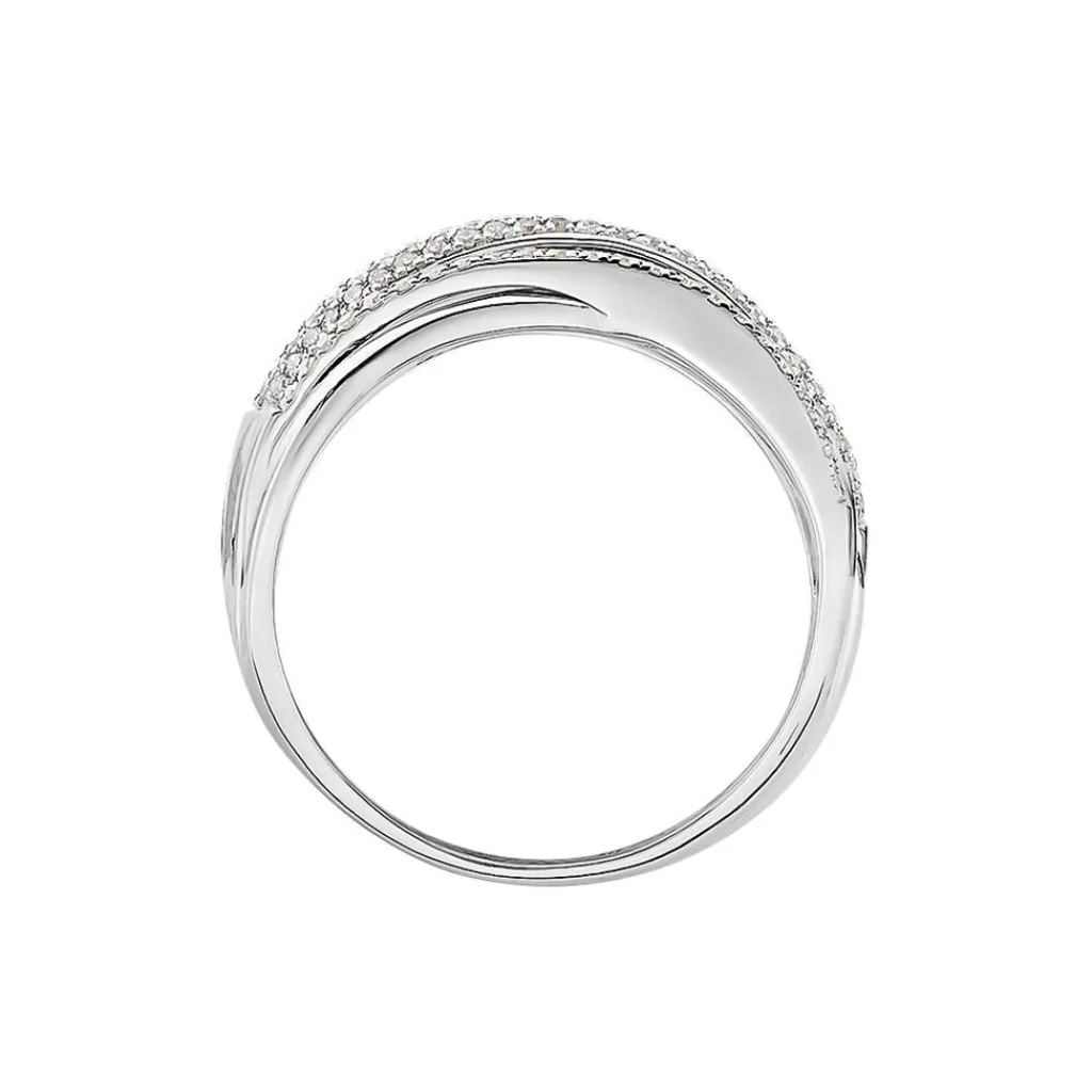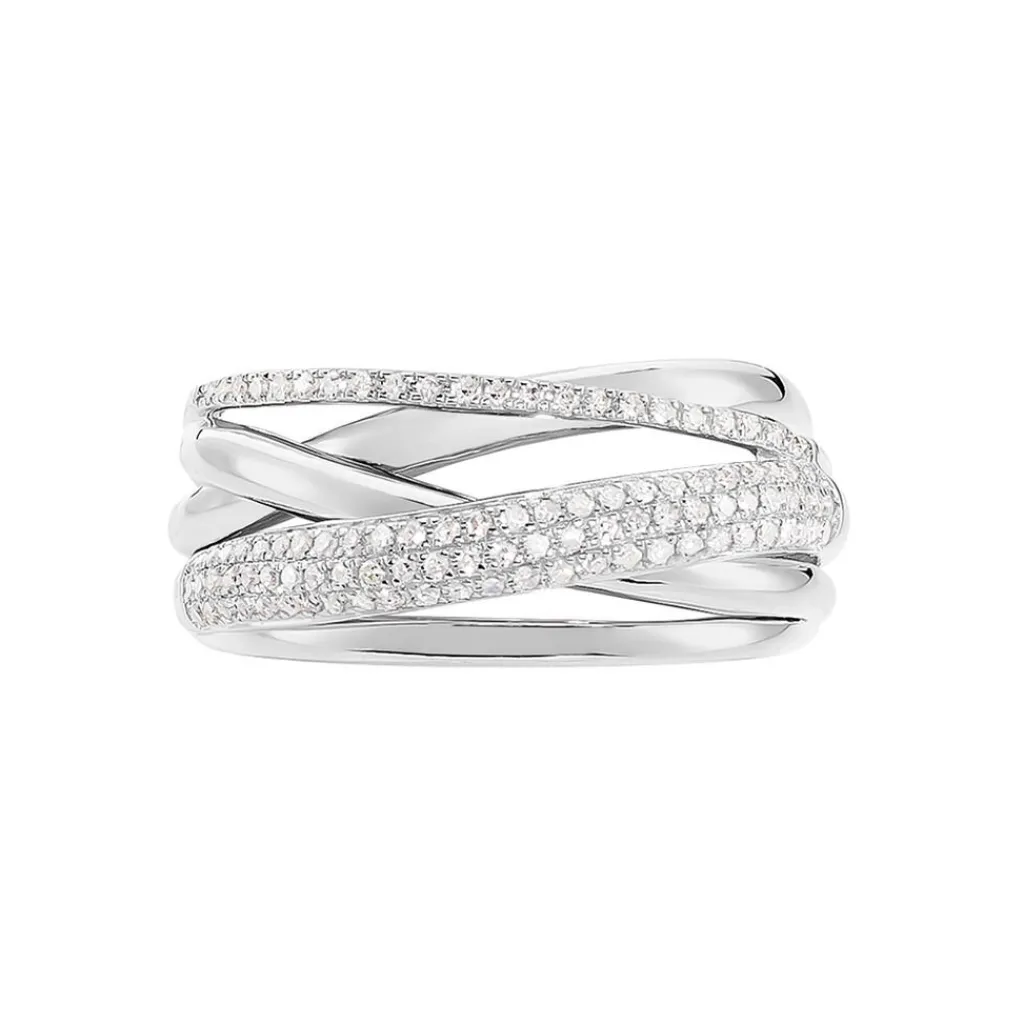 Bague Or Blanc 375/1000 Brides Croisees Et Pavages Diamants