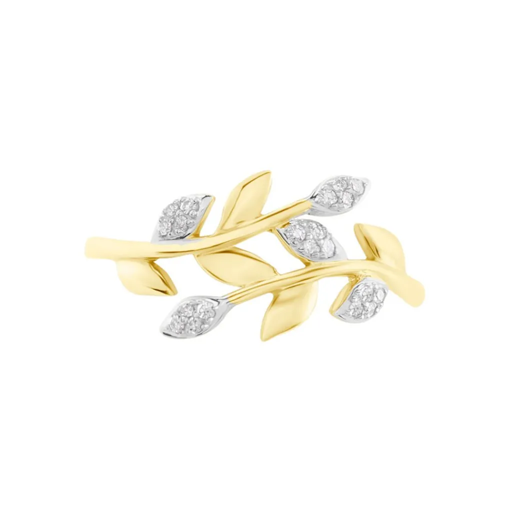 Bague Or Jaune 375/1000 Feuilles Diamants Ronds Micro Serti